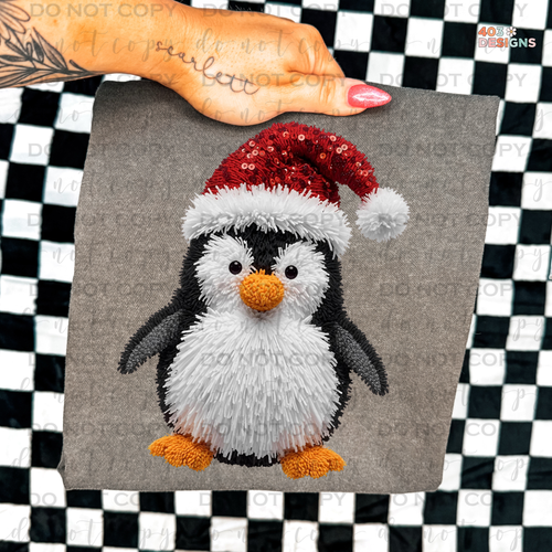 Christmas Penguin Faux Sequin DTF Transfer