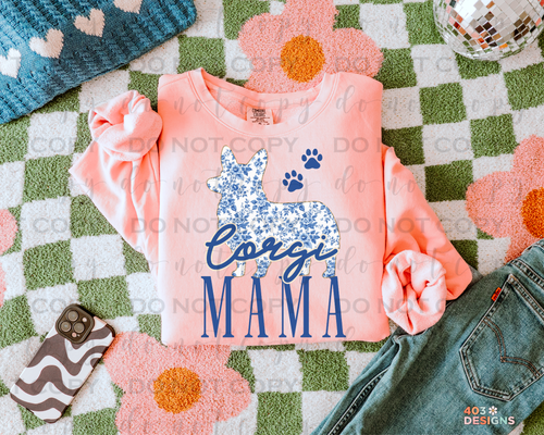 Corgi Mama Blue Floral DTF Transfer