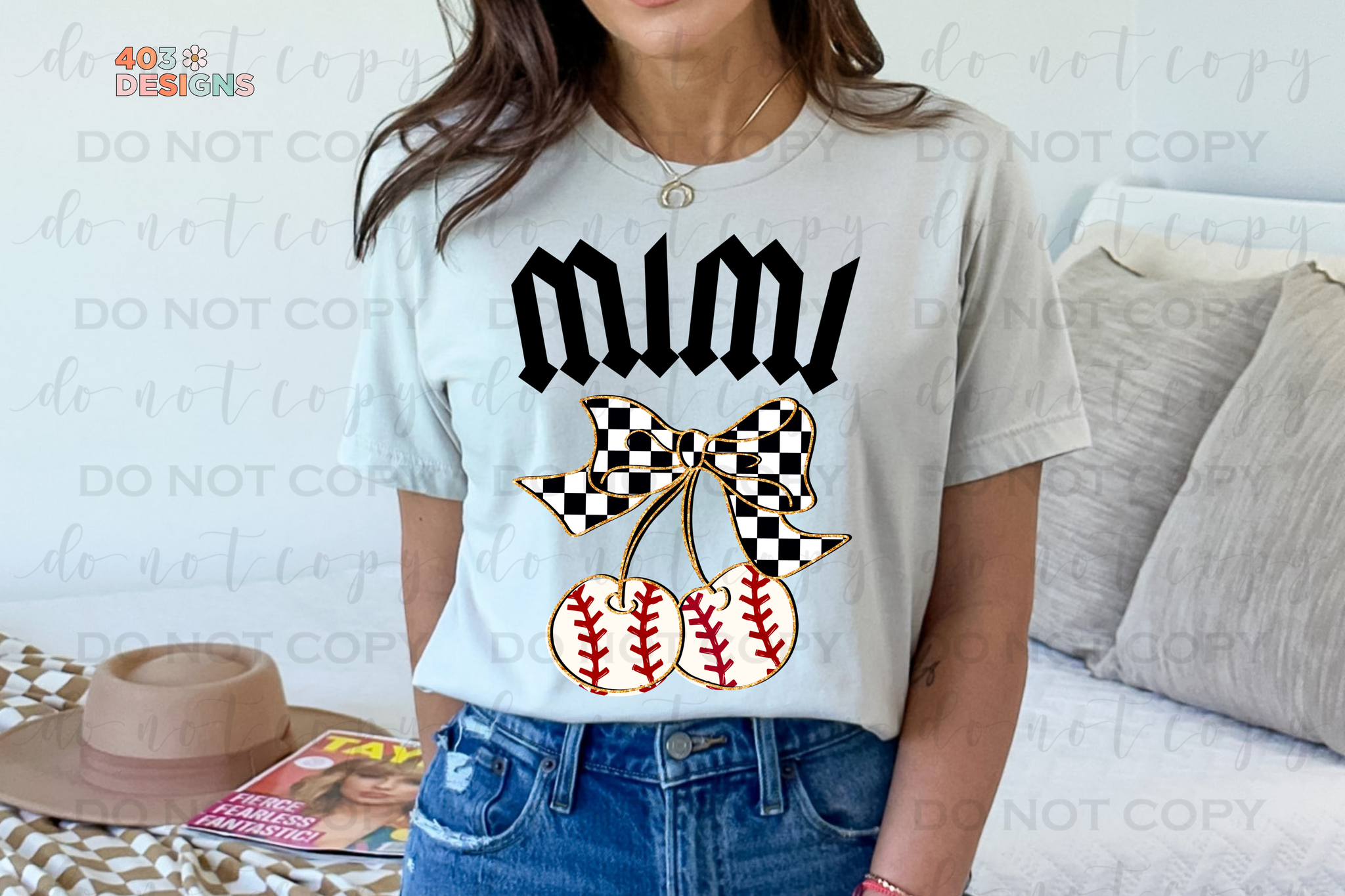Checkered Bow Baseball Title/Name DTF Transfer